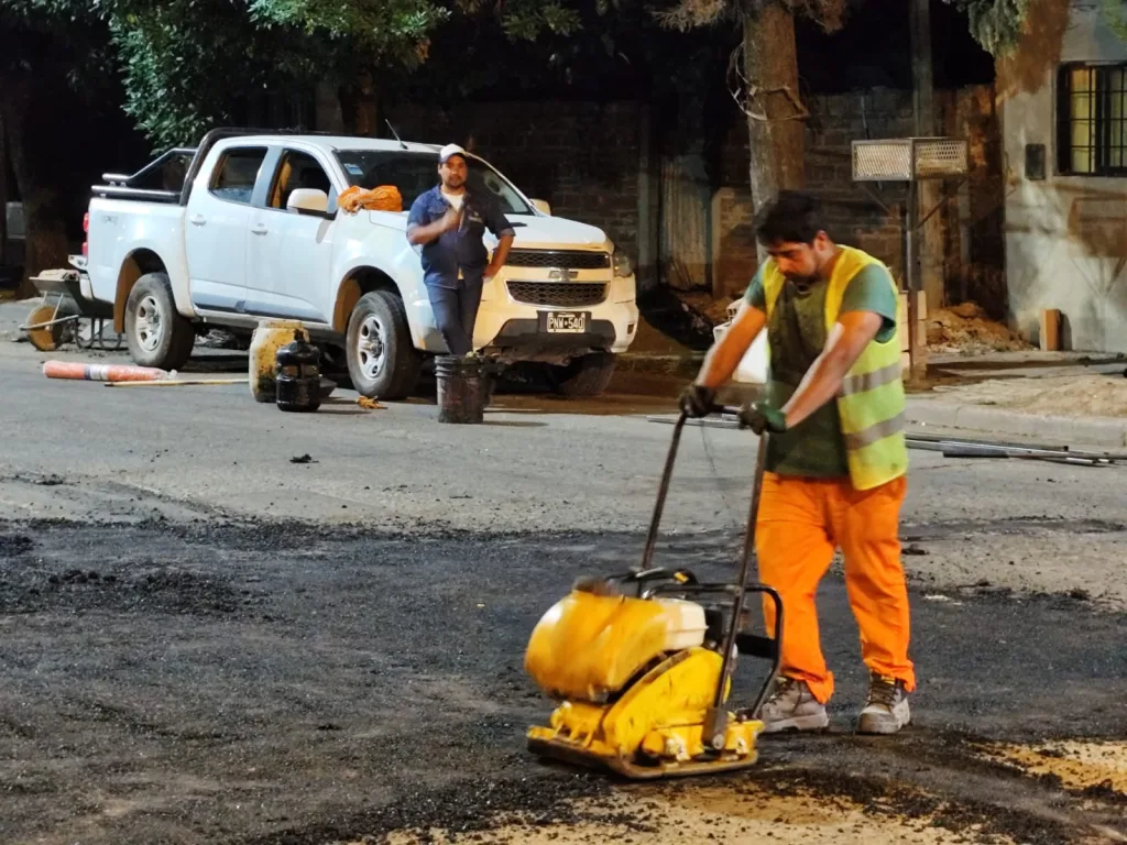 Anoche se ejecutaron obras de bacheo en frío en inmediaciones al Templete San Cayetano. Los trabajos se realizaron en el marco del plan de recuperación de calles y Verano en obra.